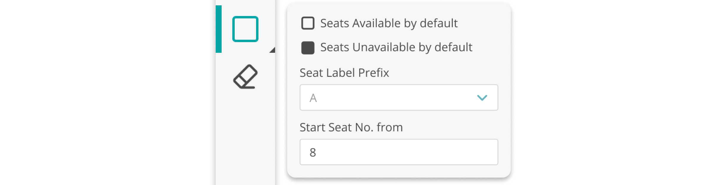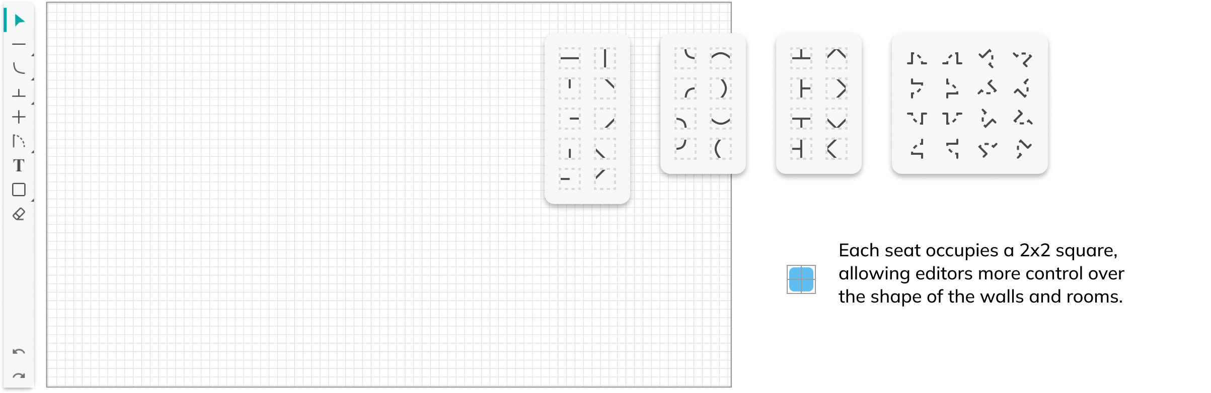 To make enumerating desks easier, the seat drawing tool allows users to input an alphabet or a prefix and will enumerate each seat drawn starting from the number “1”