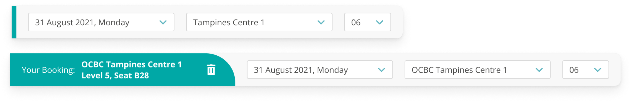 Their booking for the day will also be shown in the teal area, allowing them to also easily delete that particular booking without needing to scan the floorplan.