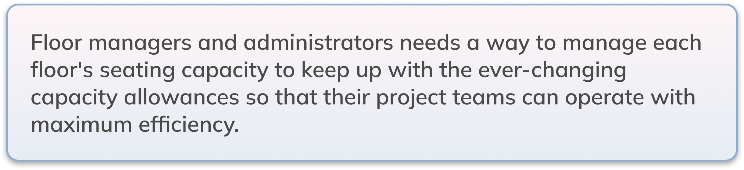That and coupled with the fact that many stakeholders were worried about seat hogging. They’ve had bad experiences regarding the booking process for meeting rooms where some teams would book a room in advance for days on end.